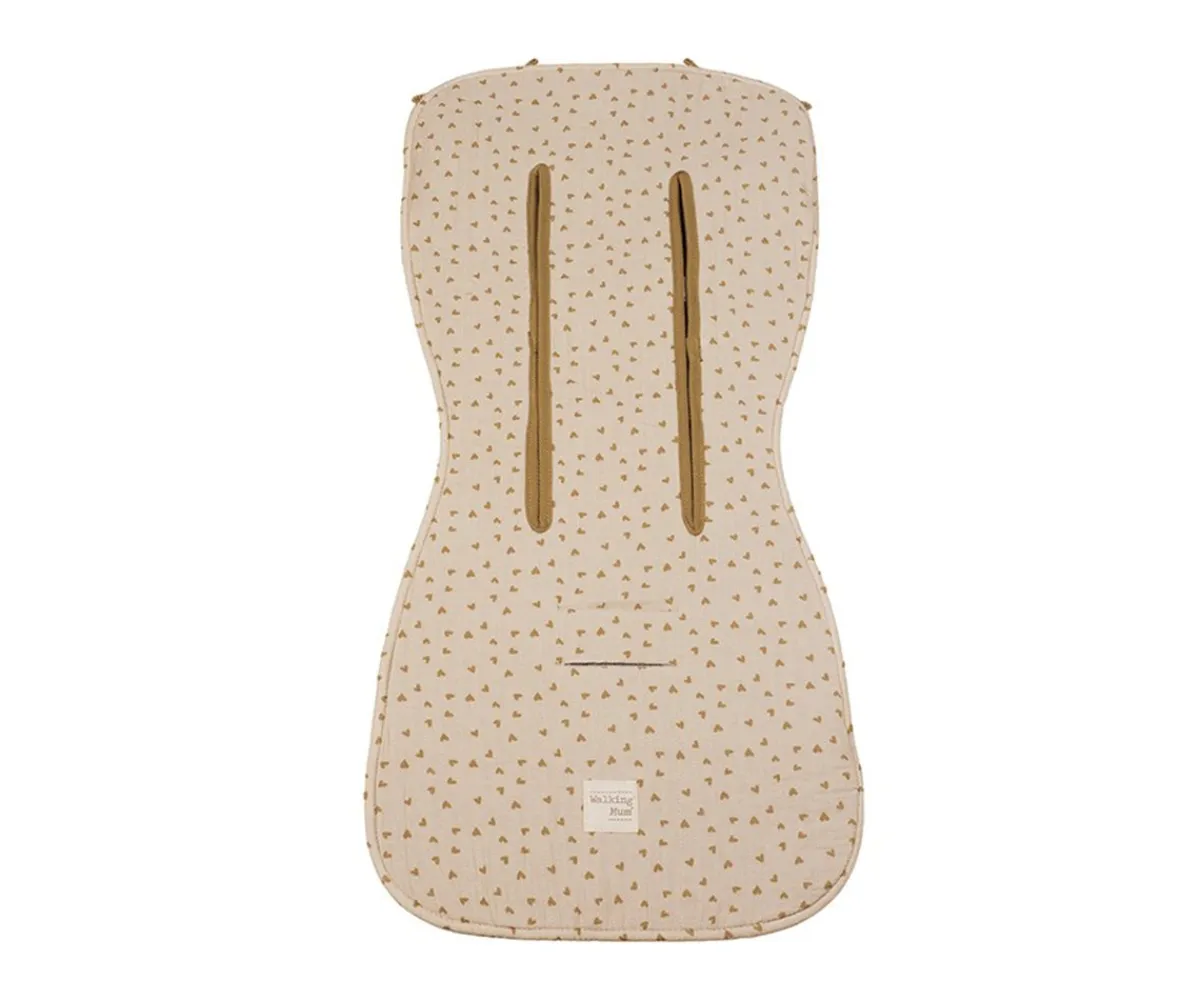 Descubre la colchoneta de la colección Corazones Poppy Cinnamon de Walking Mum, diseñada para proteger el asiento de la silla de paseo de roces y actuar como un cojín acolchadito. Confeccionada con tejido 100% de algodón, suave y transpirable, esta colchoneta ayuda a prevenir la sudoración excesiva del bebé mientras protege la sillita con estilo.