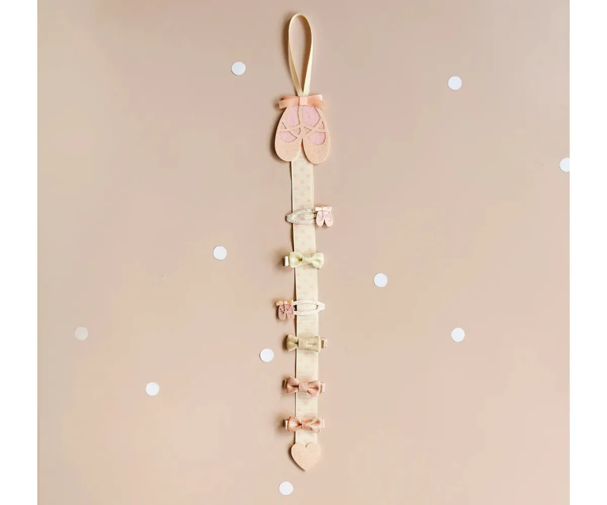 El Ballet Shoes Clip Hanger de Rockahula está diseñado con un precioso par de zapatillas de ballet en tonos rosados, decoradas con detalles bordados y un lazo delicado que aporta un toque mágico al dormitorio infantil.