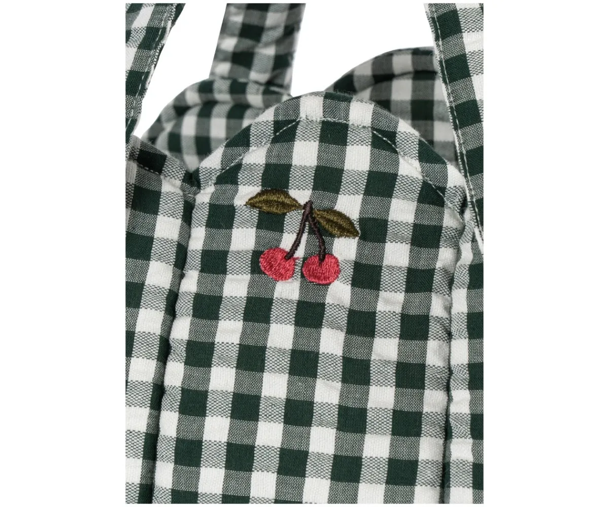 Este capazo para muñecas acolchado de Konges Slojd con su diseño vichy verdes, es ideal para transportar a tu muñeca fácilmente a todas partes, gracias a sus cómodas asas.
