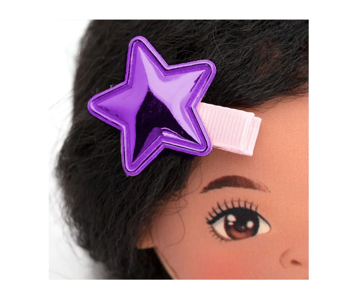 - Incluye: zapatos, clip de pelo estrella y bolsito
