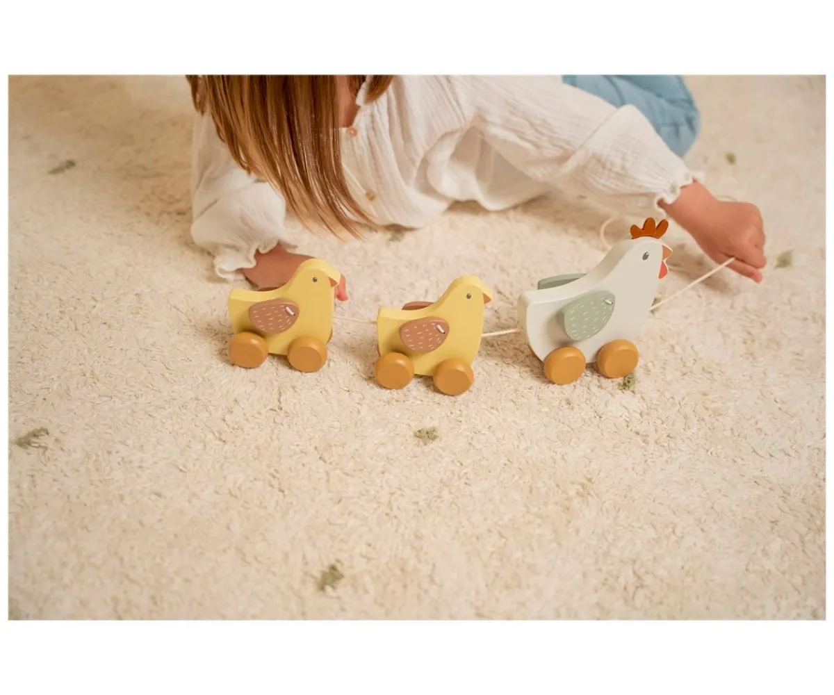 A esta familia de pollitos les encantará ir contigo de paseo. Los peques podrán tirar de la cuerdecita para pasear a la familia de pollitos al tiempo que trabajan el desarrollo motor.