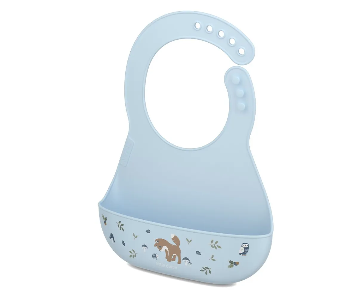 El babero de silicona flexible de la colección Mio Forest Friends por Mepal, es muy suave y cómodo. Tiene un gran bolsillo abierto recogemigas y es ajustable, para que los peques puedan usarlo durante mucho tiempo.