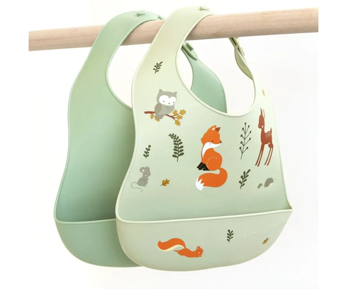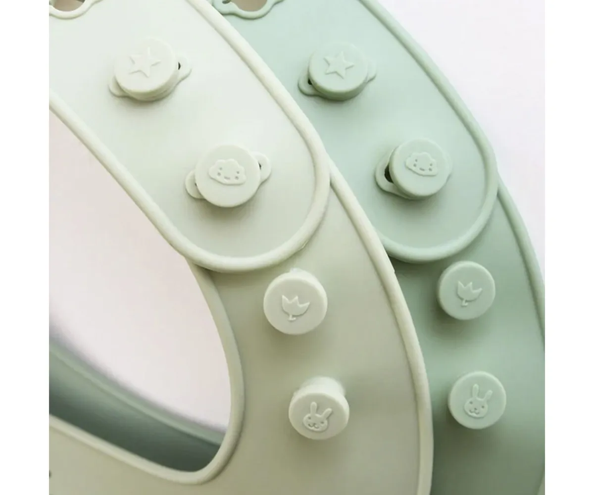Este set de 2 baberos hechos de silicona suave de grado alimenticio son impermeables, resistentes a las manchas y tienen un amplio bolsillo frontal para atrapar la comida que se les escapa a los peques.