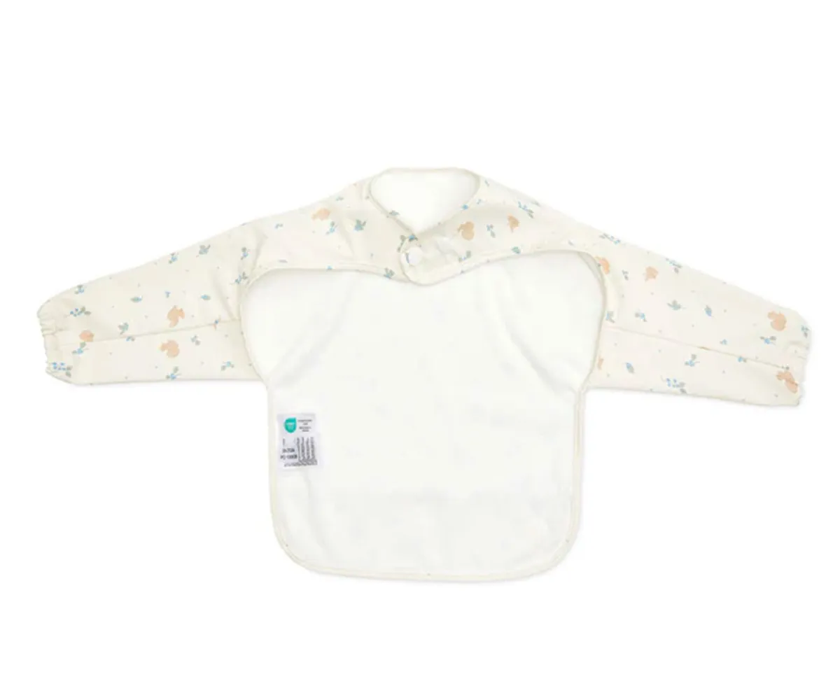 El babero con mangas Cam Cam Blueberries , es impermeable y tiene un práctico bolsillo en la parte delantera que lo atrapa todo.
