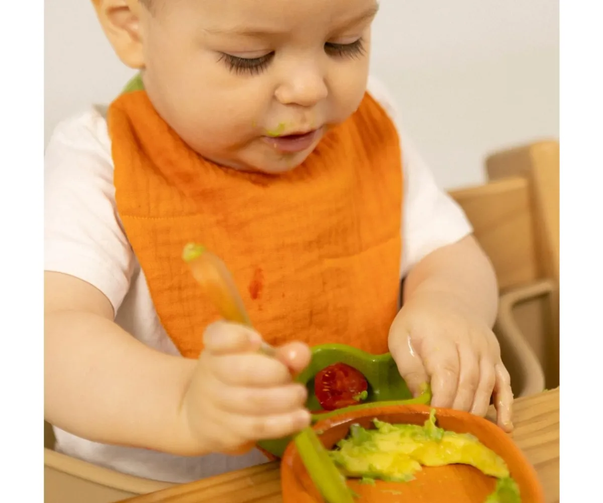 El babero Cathy The Carrot de Oli & Carol está diseñado para acompañar a tu peque en sus primeras comidas con comodidad, seguridad y estilo. Este babero no solo protege la ropa, sino que también convierte cada comida en una experiencia sensorial muy divertida.