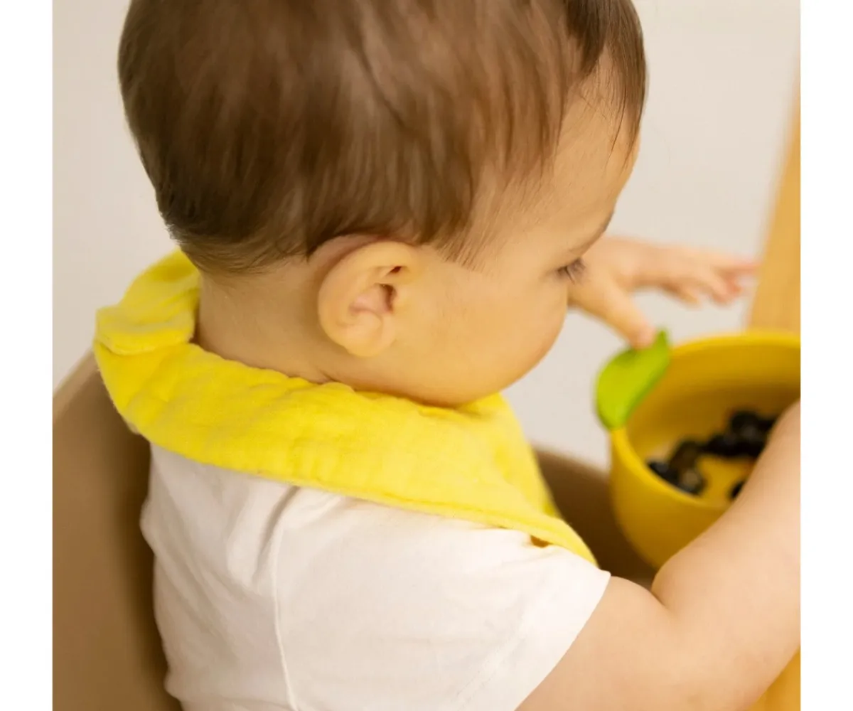 El babero Lou The Lemon de Oli & Carol está diseñado para acompañar a tu peque en sus primeras comidas con comodidad, seguridad y estilo. Este babero no solo protege la ropa, sino que también convierte cada comida en una experiencia sensorial muy divertida.