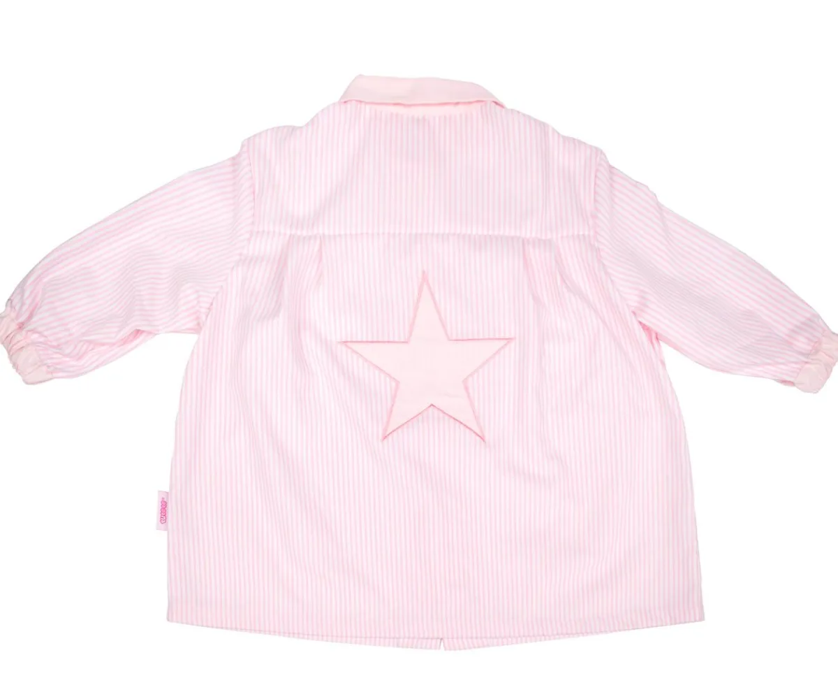 Cuello y bolsillo en color liso a juego con las rayas y una preciosa estrella en la espalda harán que no puedas resistirte a tener uno para tu peque, personalizado con su nombre.