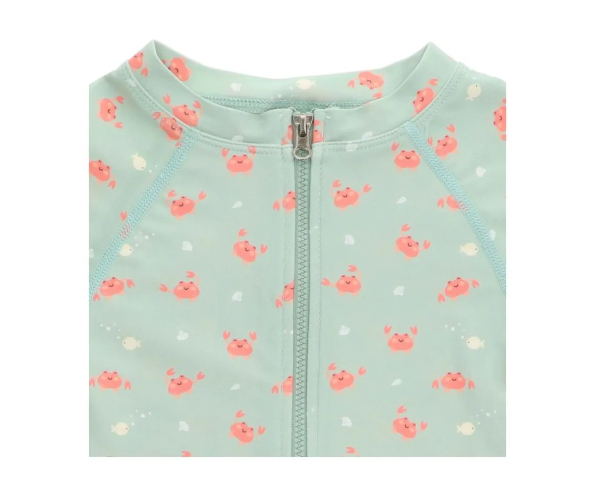 Bañador con cremallera delantera de la colección Crab Sage de Monnëka que ha sido creado con una tela especial que protege a la piel de los rayos solares
