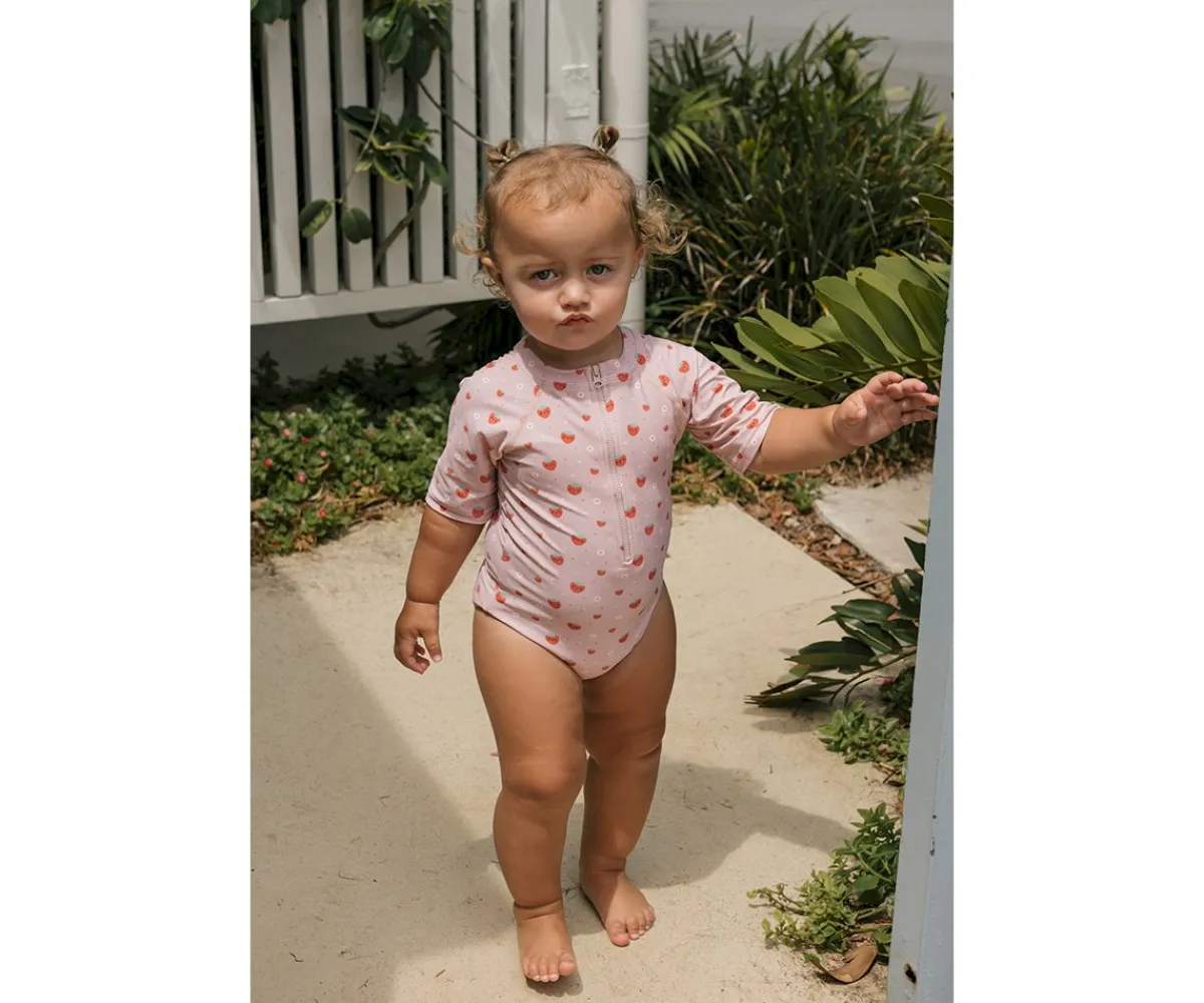 Los bañadores con cremallera delantera y preciosos estampados de las colecciones Verano Monnëka 2025 han sido confeccionados con una tela especial que protege la piel de los peques de los rayos solares.