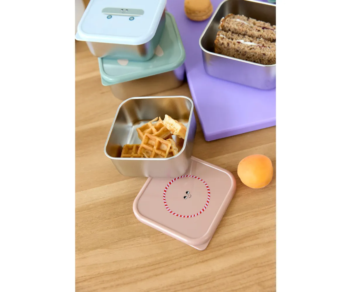El set de 3 cajas con base de acero inoxidable de LÄSSIG para llevar fruta, verdura y pequeños snacks son ideales para llevar contigo al cole, de excursión o al parque.