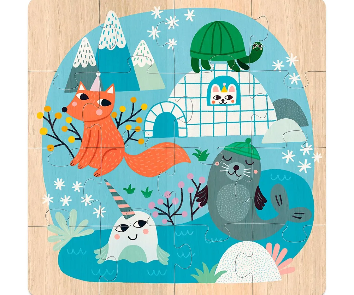 3 puzzles originales y didácticos de animalitos del mundo con los cuales los peques disfrutarán encajando sus fichas.