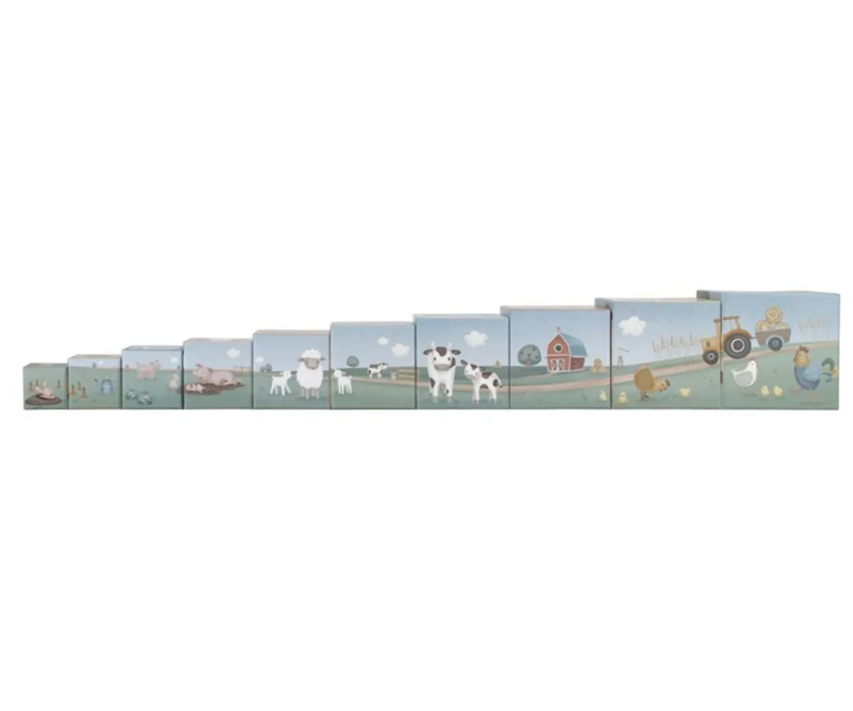 Decorados con detalles de la colección Little Farm, estos cubos de cartón son resistentes a los golpes.