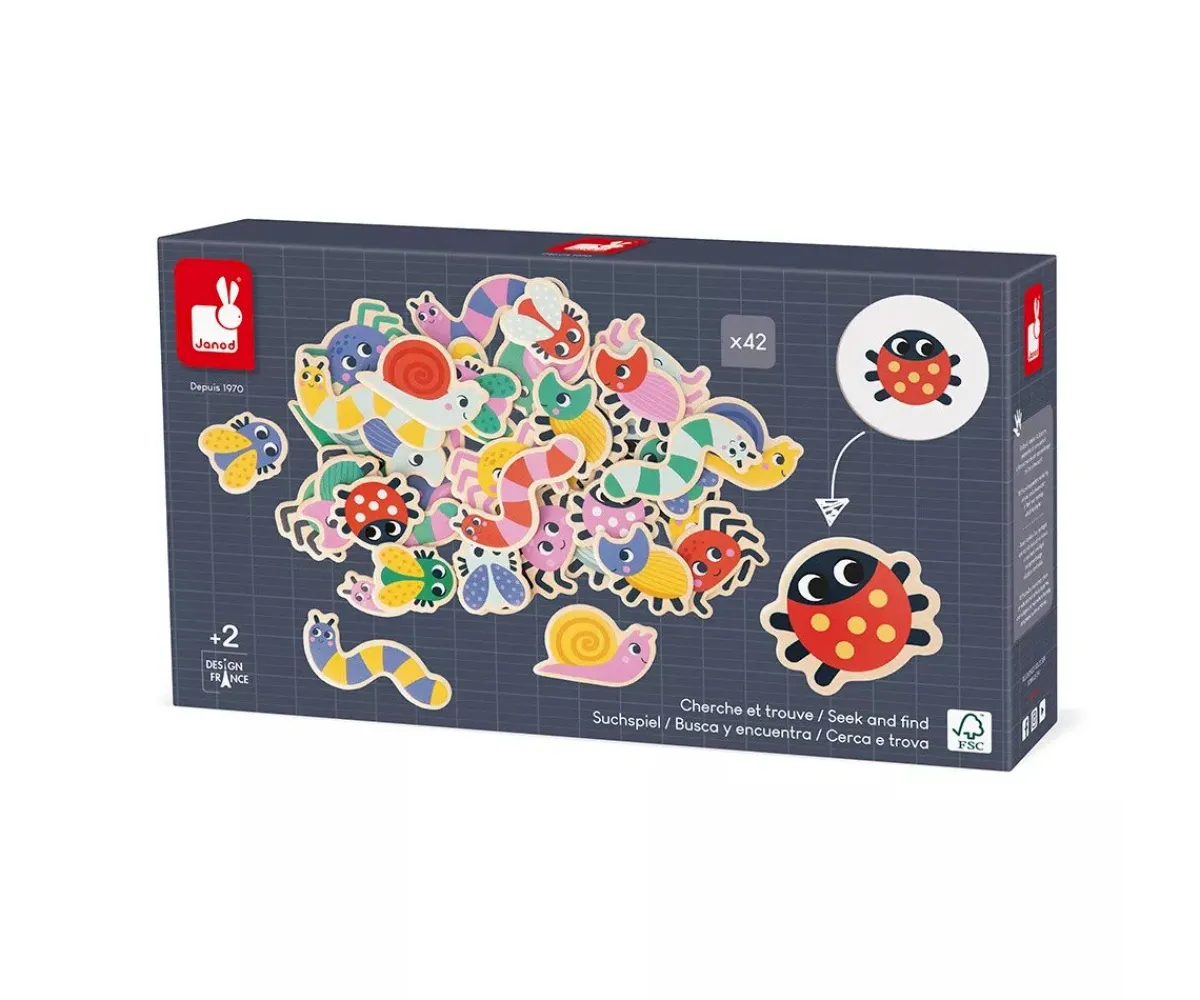 Con este juego de buscar y encontrar sobre el tema del jardín, los peques desarrollarán la capacidad de observación mientras se divierten. El juego incluye 42 insectos (orugas, mariquitas, caracoles, escarabajos, arañas y moscas), 42 cartas redondas de cartón y una práctica bolsa de algodón para guardar y transportar fácilmente.