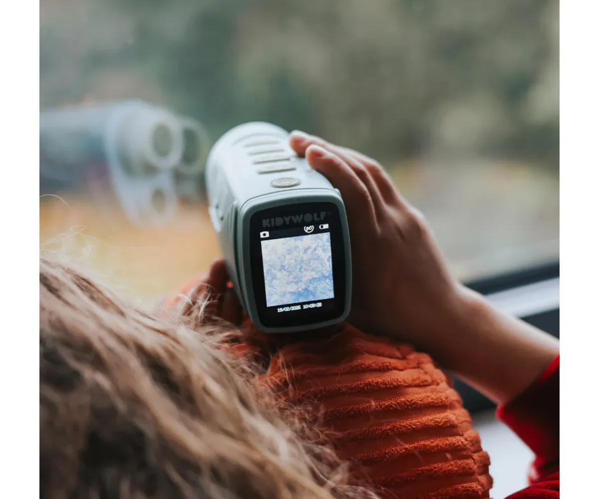 Esta cámara con visión nocturna por infrarrojos de KIDYWOLF permite observar el entorno incluso en completa oscuridad, alcanzando hasta 70 metros de distancia. Una experiencia única que despierta la curiosidad, la atención y el espíritu aventurero tanto de día como de noche.