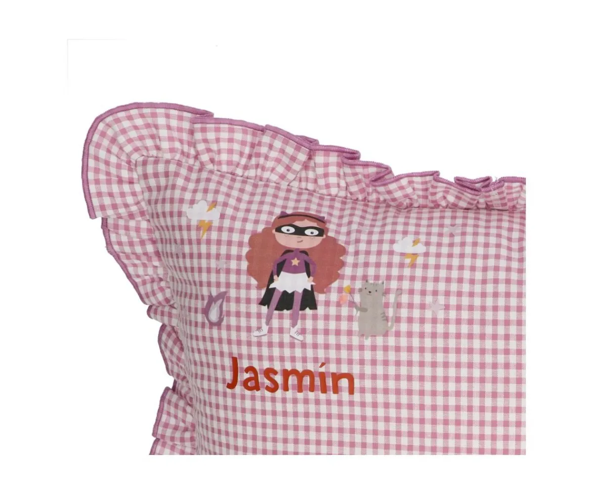 Best Cojín con Volantes Vichy Fantastic Girl Personalizado Cojines Infantiles|Colecciones Vuelta Al Cole