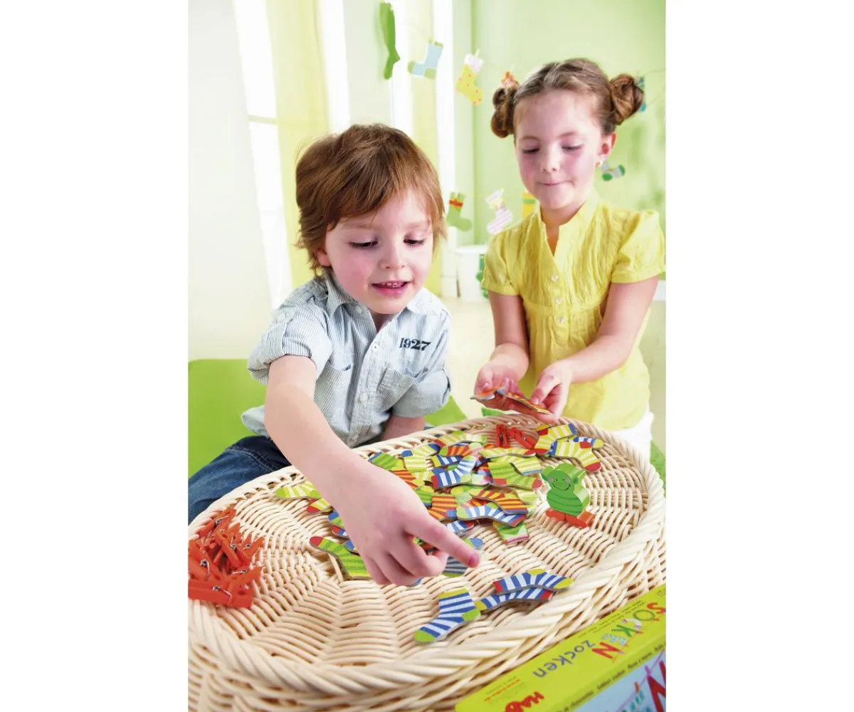 - Incluye: 1 monstruo de los calcetines, 48 calcetines (24 pares) y 13 pinzas