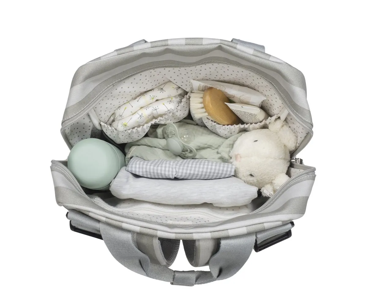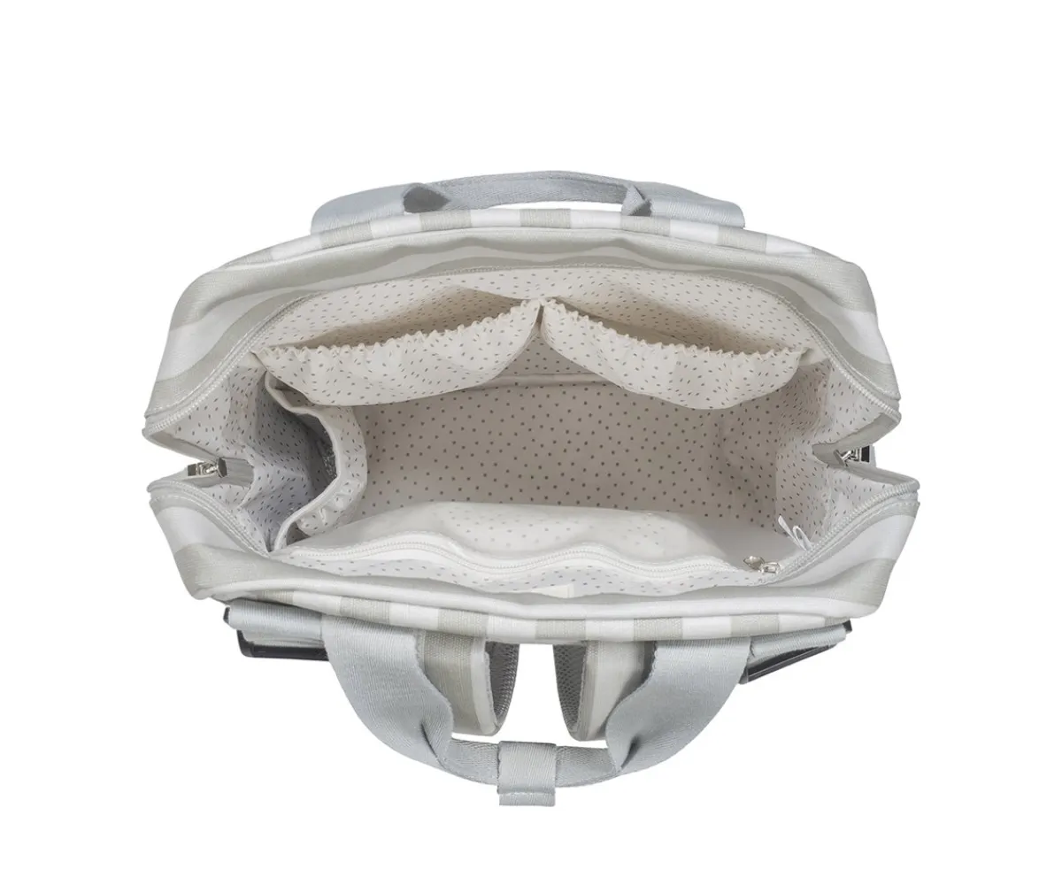- Incluye un cambiador impermeable a juego y un bolsillo plastificado para almacenar la ropa mojada