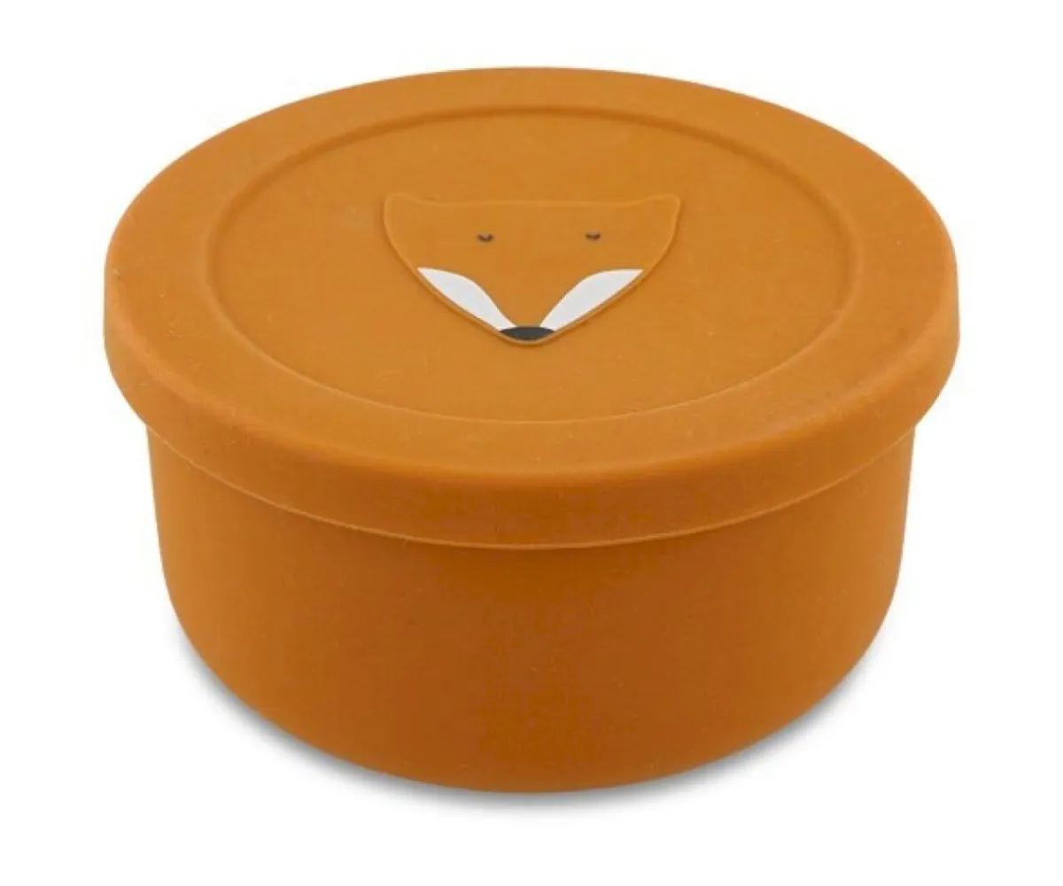 Cuenco con tapa de silicona de la colección Mr.Fox de Trixie, diseñado para durar y resistir golpes. La tapa proporciona comodidad al transportar alimentos.
