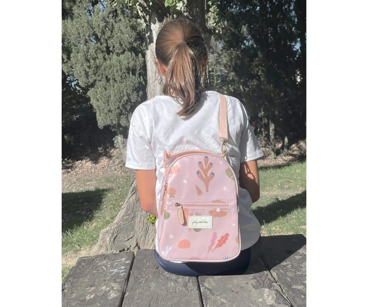 Lleva tu almuerzo y merienda a todas partes con esta práctica mochila térmica. Su asa se puede transformar para que sea fácil de transportar, ya sea en la mano o como mochila en el hombro.