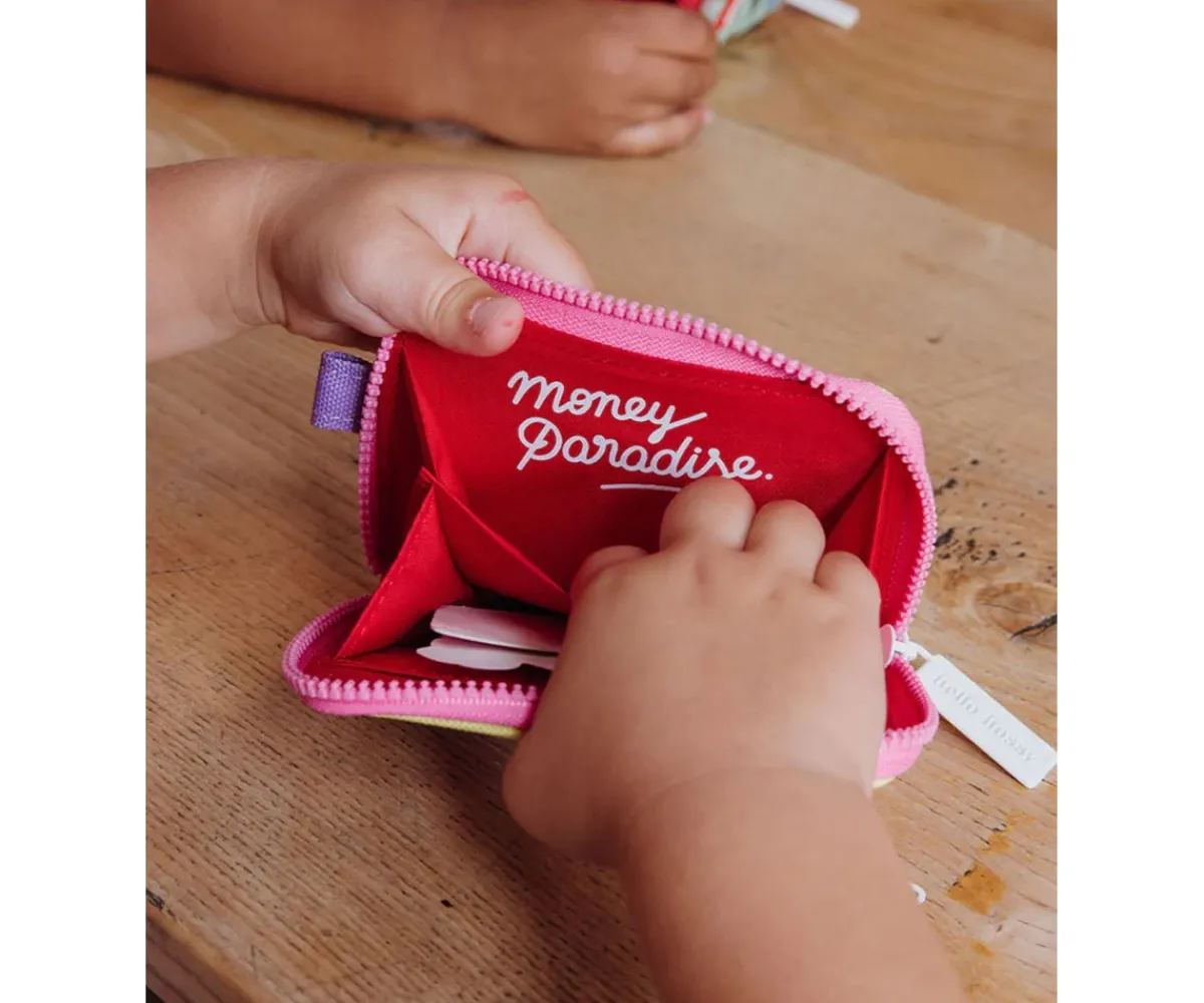 Monedero infantil Mini Mauve de Hello Hossy con dos compartimentos interiores y cierre de cremallera, cómoda y compacta para llevar siempre contigo.