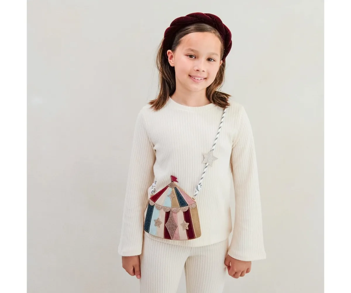 El original bolsito de Mimi&Lula con forma de carpa de circo, es el accesorio perfecto para complementar cualquier look de tu peque.