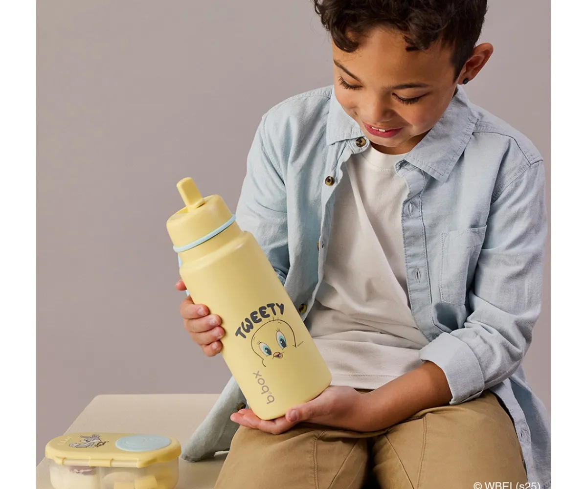 Diseñado para el día a día, con aislamiento de triple capa, esta botella térmica de edición limitada Looney Tunes de B.Box x Warner Bros mantendrá el frío hasta por 46 horas. Cuenta con una tapa abatible y una pajita de acero inoxidable en el interior. El asa de transporte flexible hace que beber y su transporte, sea muy sencillo.