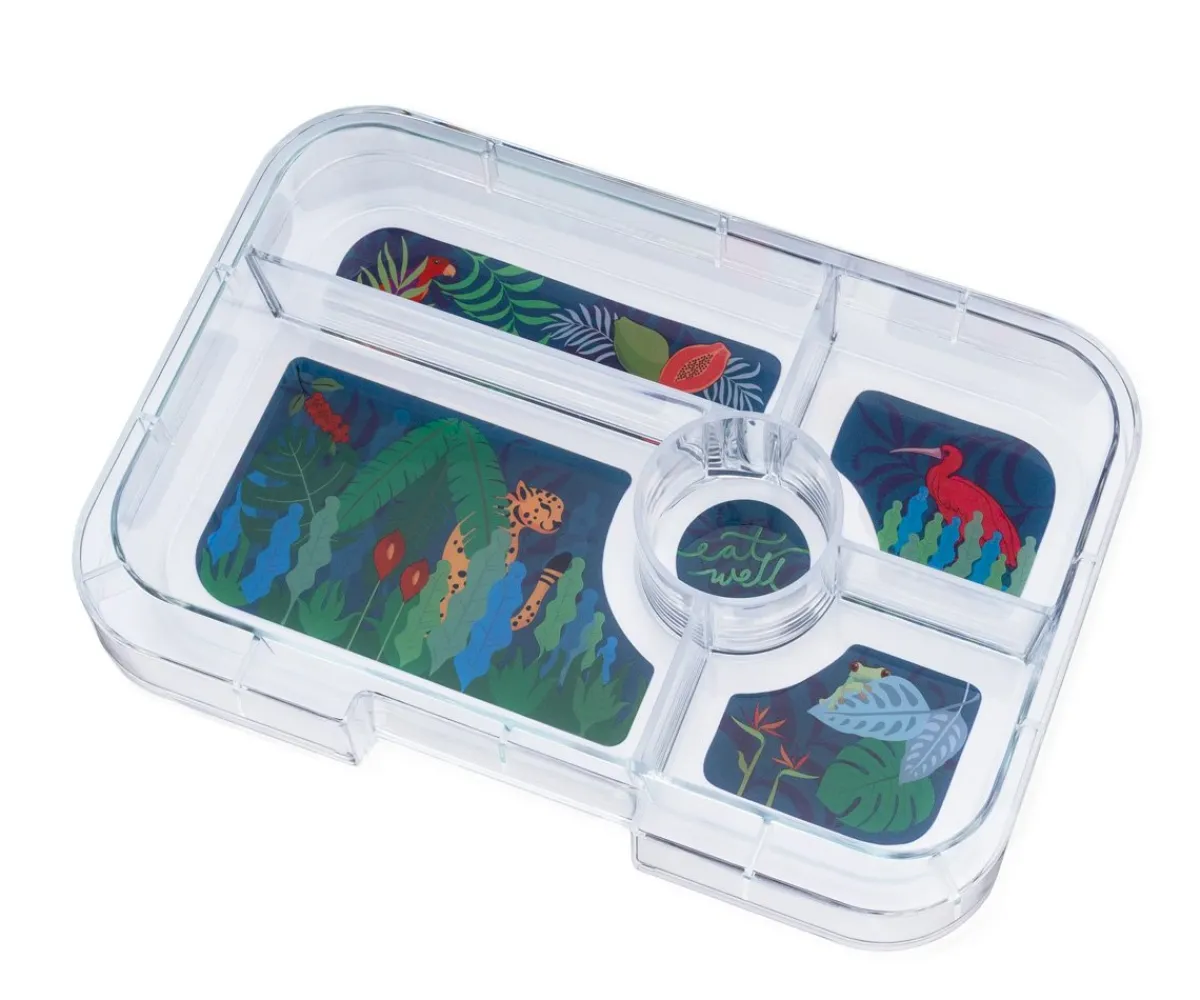 Su tapa con junta de silicona garantiza un cierre hermético, ideal para transportar yogur o salsas sin derrames. Con 5 compartimentos, dibujos divertidos y muy fácil de usar.