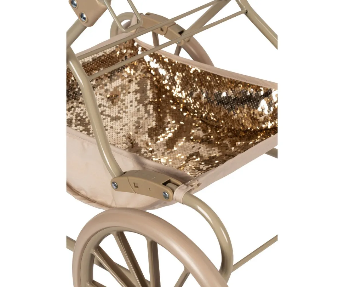 Este carrito de muñecas de Konges Slojd de estilo vintage con su cuatro ruedas grandes ofrece una mayor estabilidad a la hora de pasear a las muñecas.