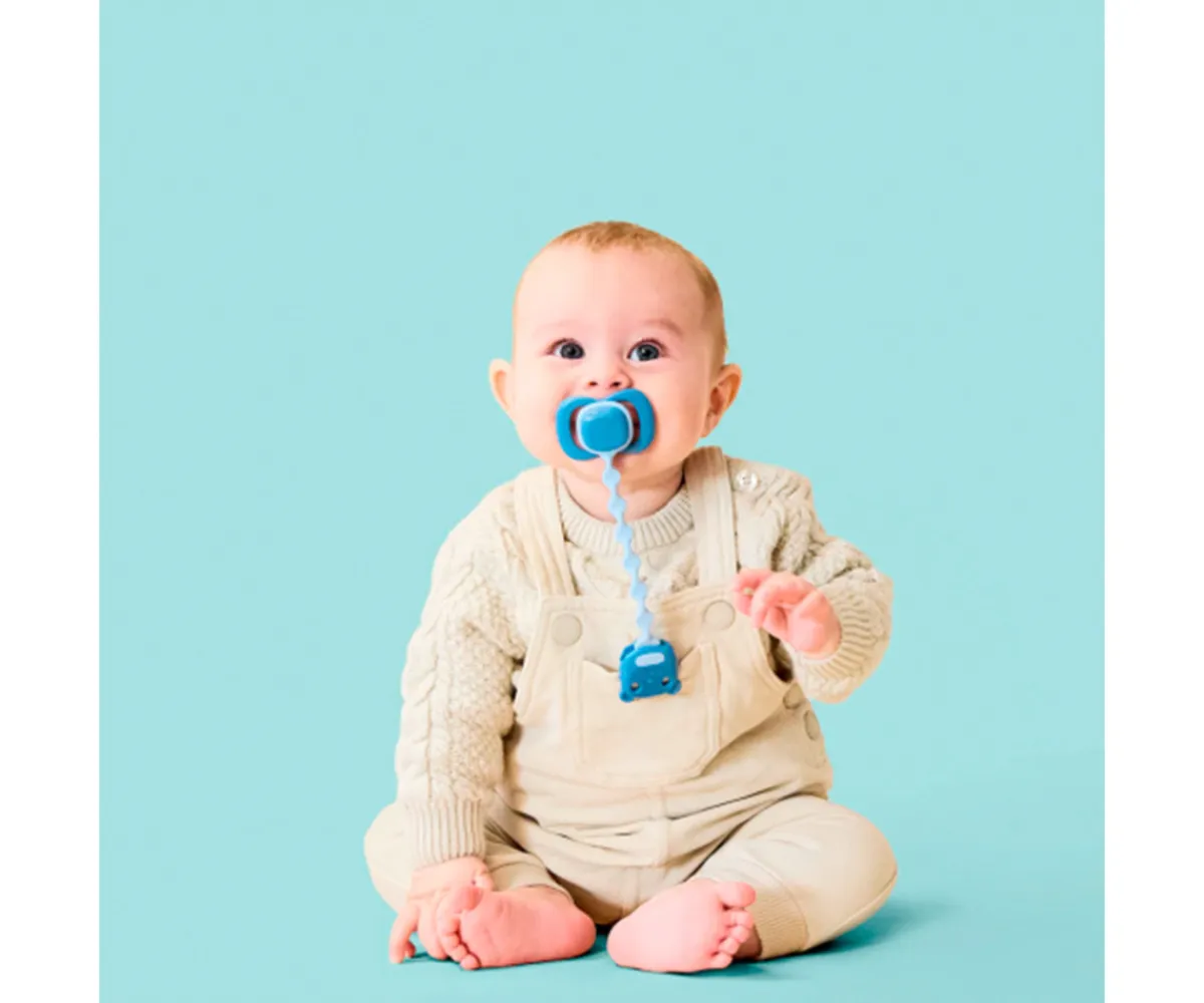 El accesorio perfecto para mantener el chupete siempre limpio, seguro y al alcance del bebé. Su innovadora cinta tridimensional flexible y su clip fácil de abrir con una sola mano lo convierten en una opción cómoda y práctica para familias activas.