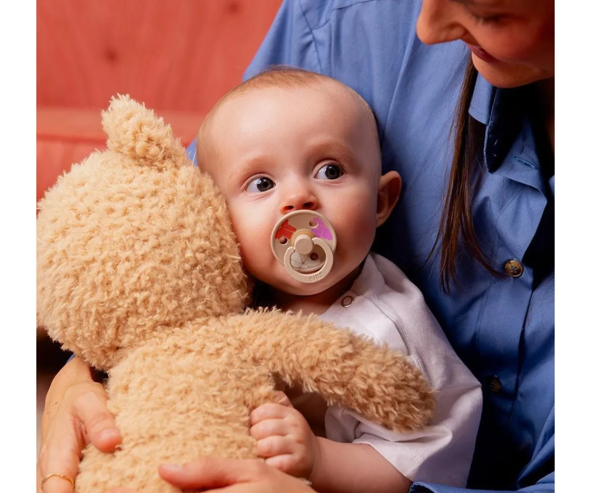 - Simétrica: También llamada fisiológica. Promueve una técnica de succión donde la lengua está plana y presiona el chupete contra el paladar por lo que el bebé no necesita succionar tan fuerte