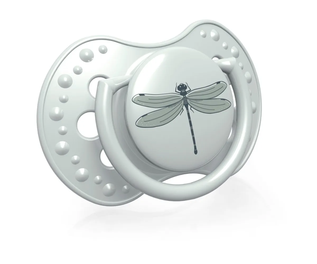 Fomenta el reflejo de succión saludable. Su forma exclusiva y su tetina dinámica ayudan a respirar libremente a través de la nariz y tragar saliva; evitan el reflejo de morder el chupete y permiten el desarrollo correcto del habla y del encaje de los maxilares (siguiendo las recomendaciones de especialistas en ortodoncia y logopedia).