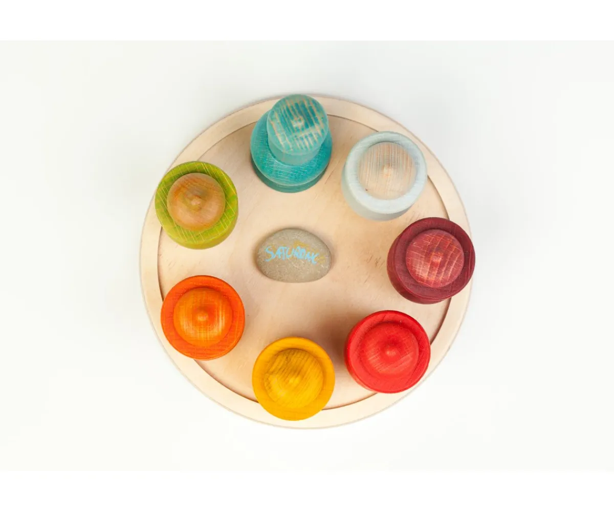 - 7 Nins®-bellota en 7 colores que se asocian con cada día de la semana de acuerdo con la pedagogía Waldorf
