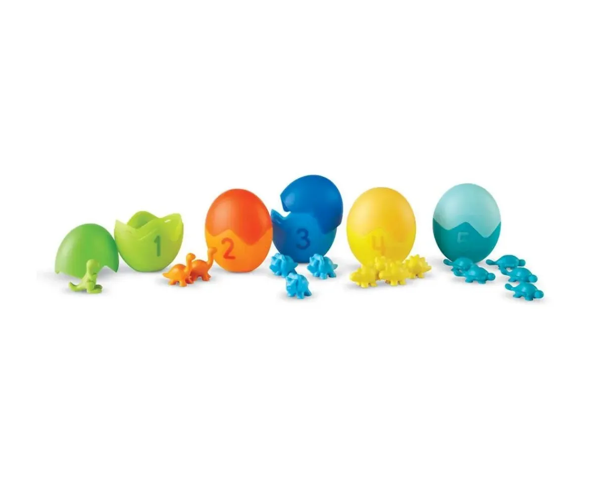 Este juego permite a los peques contar y reconocer colores mientras descubren cuántos dinosaurios hay dentro de cada huevo. Cada uno lleva un número en el exterior y en su interior se esconden el número de dinosaurios. Incluye 55 figuras de diferentes especies como T-Rex, Apatosaurios, Triceratops, ¡y muchos más!