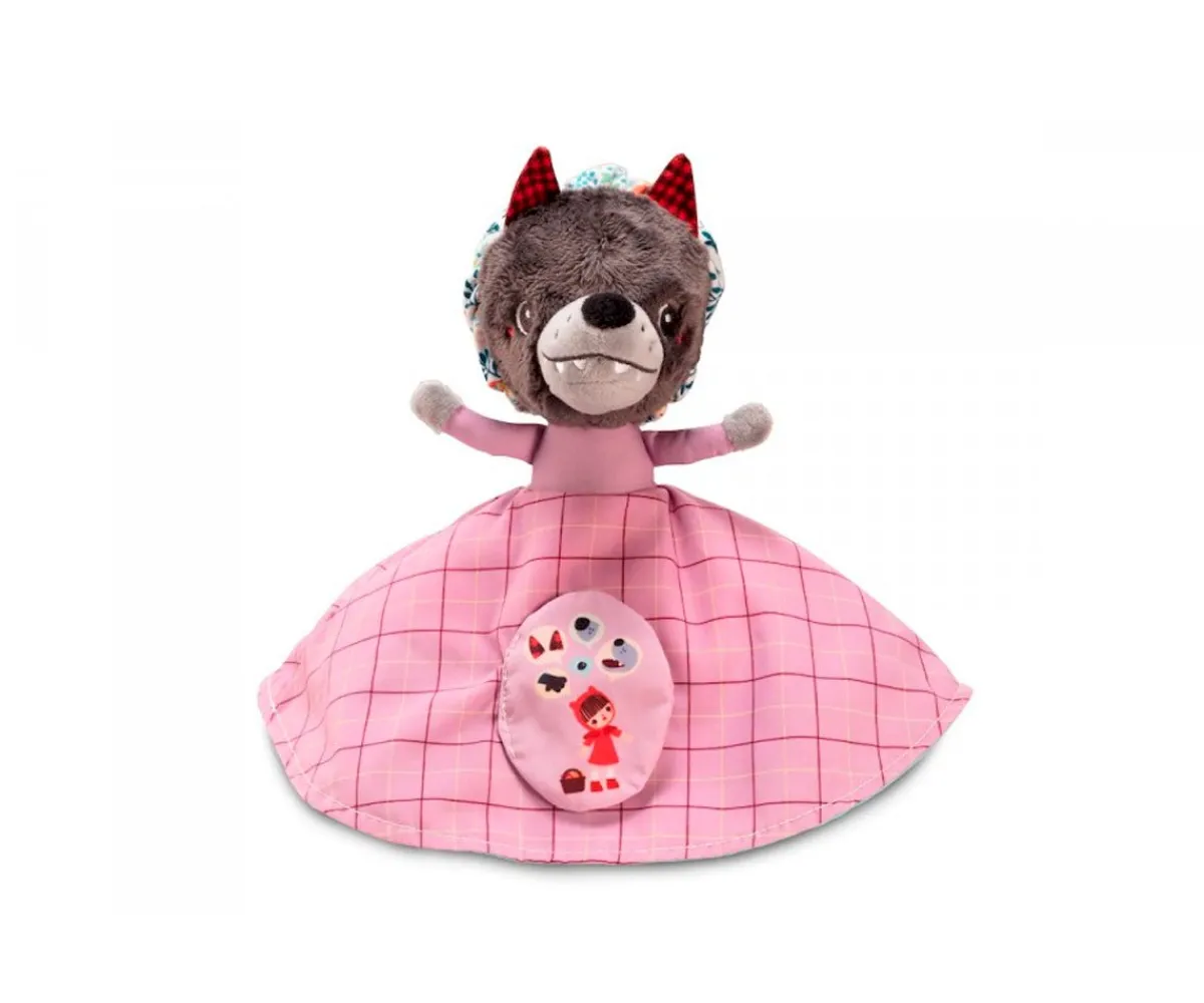 Con esta original marioneta reversible podrás contar el cuento de la caperucita roja ayudándote de los dibujitos que hay en los vestidos de caperucita y su abuelita. Deberás darle la vuelta a la marioneta para que vayan apareciendo la abuelita y el lobo.