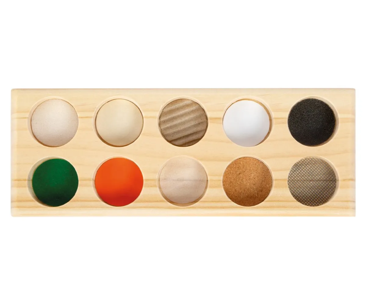 - Incluye: tablero de madera con 10 piezas con colores y texturas diferentes