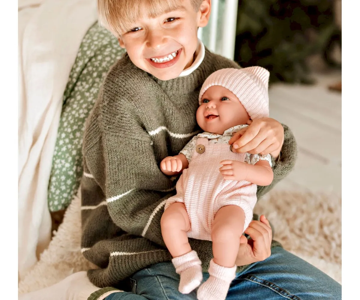 Es la compañera pefecta para que tu peque lleve a todas partes para cuidarla, jugar juntos y vivir muchas aventuras.Zoe lleva puesto un pelele rosa empolvado,gorrito a juego, camisa estampada y su inseparable cojín, en el que le encanta descansar.