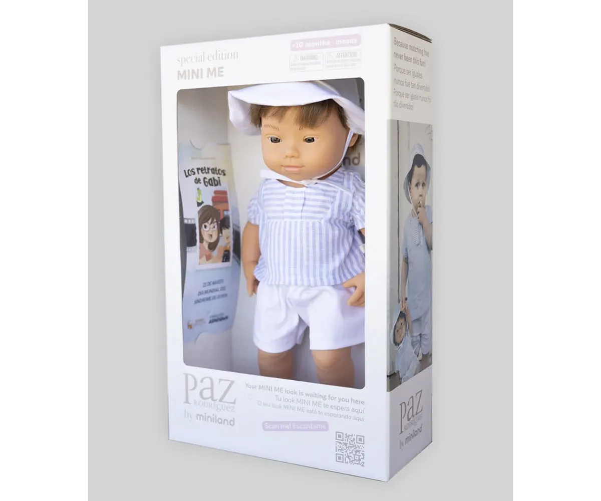 Un muñeco que enseña a querer a los demás. Este muñeco caucásico con Síndrome de Down de 38 cm, vestido con un elegante conjunto de rayas de Paz Rodríguez, es mucho más que un juguete: es una invitación a jugar con empatía y cariño. Fabricado en España por Miniland, con un tacto suave y un delicado aroma a vainilla, ayuda a los peques a aprender sobre la diversidad mientras desarrollan su imaginación. Porque cada niño es único y especial.