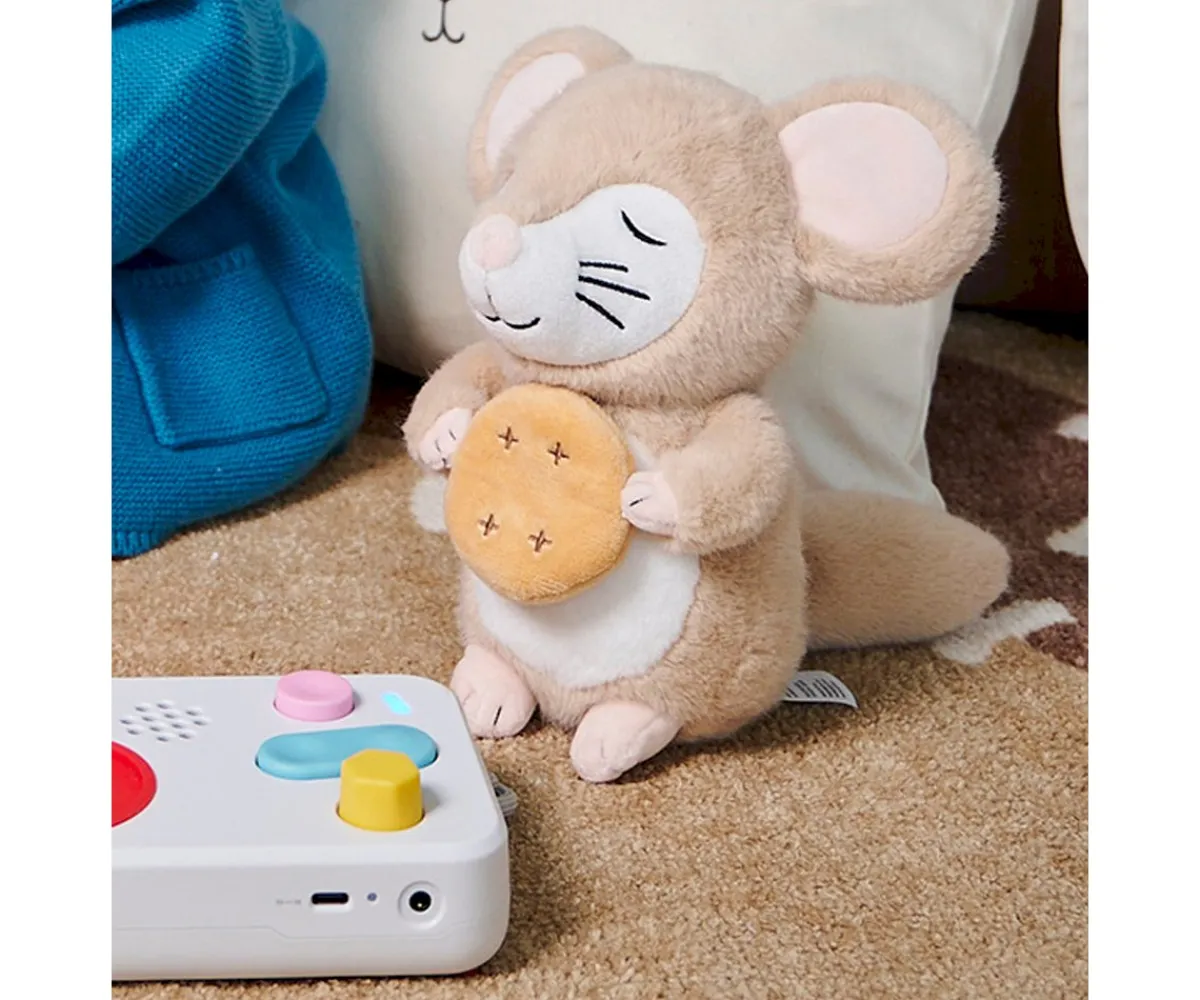 Óscar es un tierno peluche con un disco sonoro de FABA, para escuchar ocho historias, en forma de rima, ¡perfectas para la hora de irse a dormir!