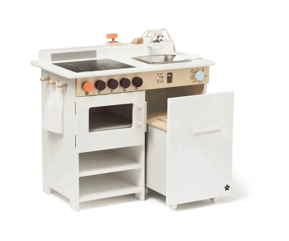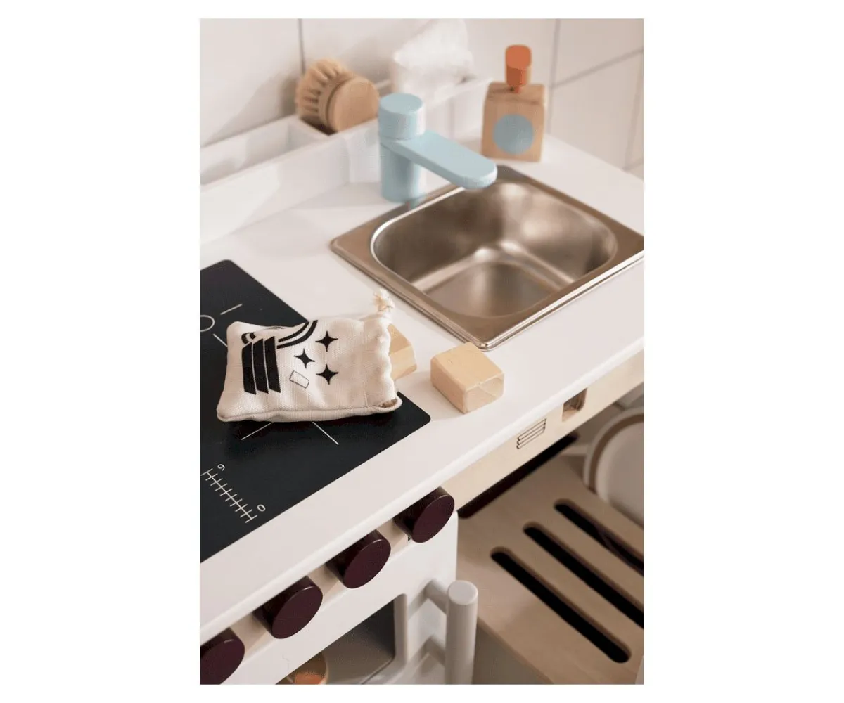 Una cocina completa donde poder imitar las acciones diarias de cocinado y limpieza. Un juego simbólico donde podrán desarrollar la imaginación, la creatividad y las habilidades sociales.
