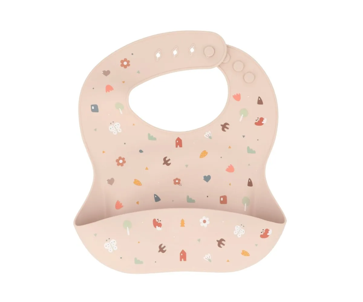 Gracias a su cierre ajustable, el babero se adapta a cada etapa de crecimiento del bebé. Su material flexible permite doblarlo fácilmente y guardarlo en el bolso cambiador sin ocupar apenas espacio.