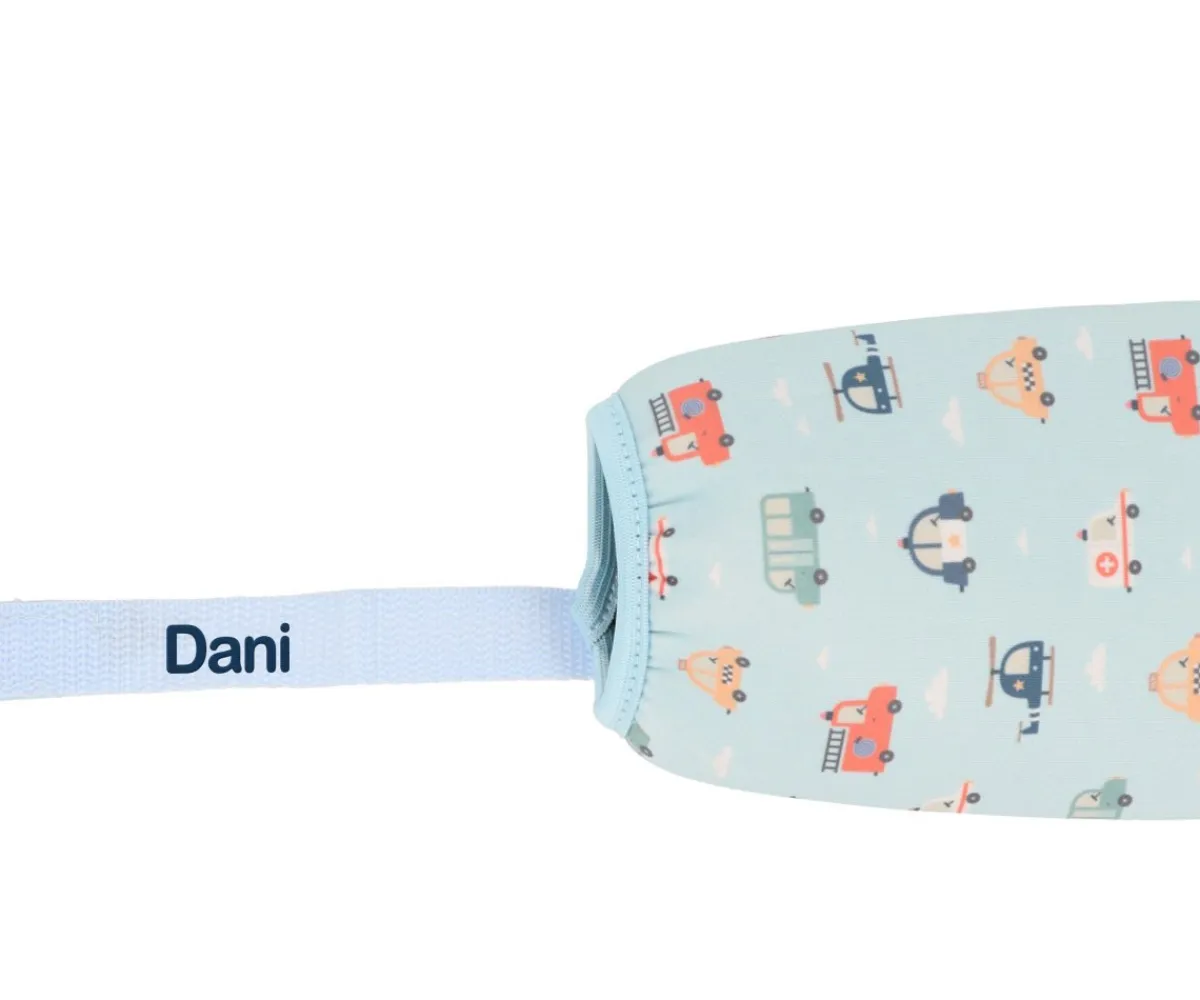 Botella Infantil de Acero Inoxidable con Funda de Neopreno Personalizable 350 ml de la Colección Vuelta a Cole City Cars de Tutete.