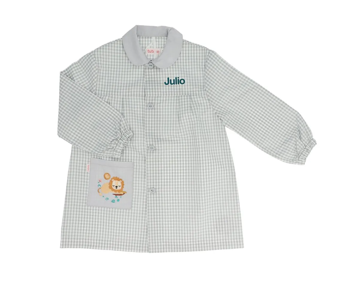 Fabricados especialmente para Tutete por fabricantes especializados en grandes marcas, los babis Seber cierran en la parte delantera mediante botones y cuentan con un bolsillo bordado con los originales diseños de la Vuelta al Cole 2024 de Tutete.