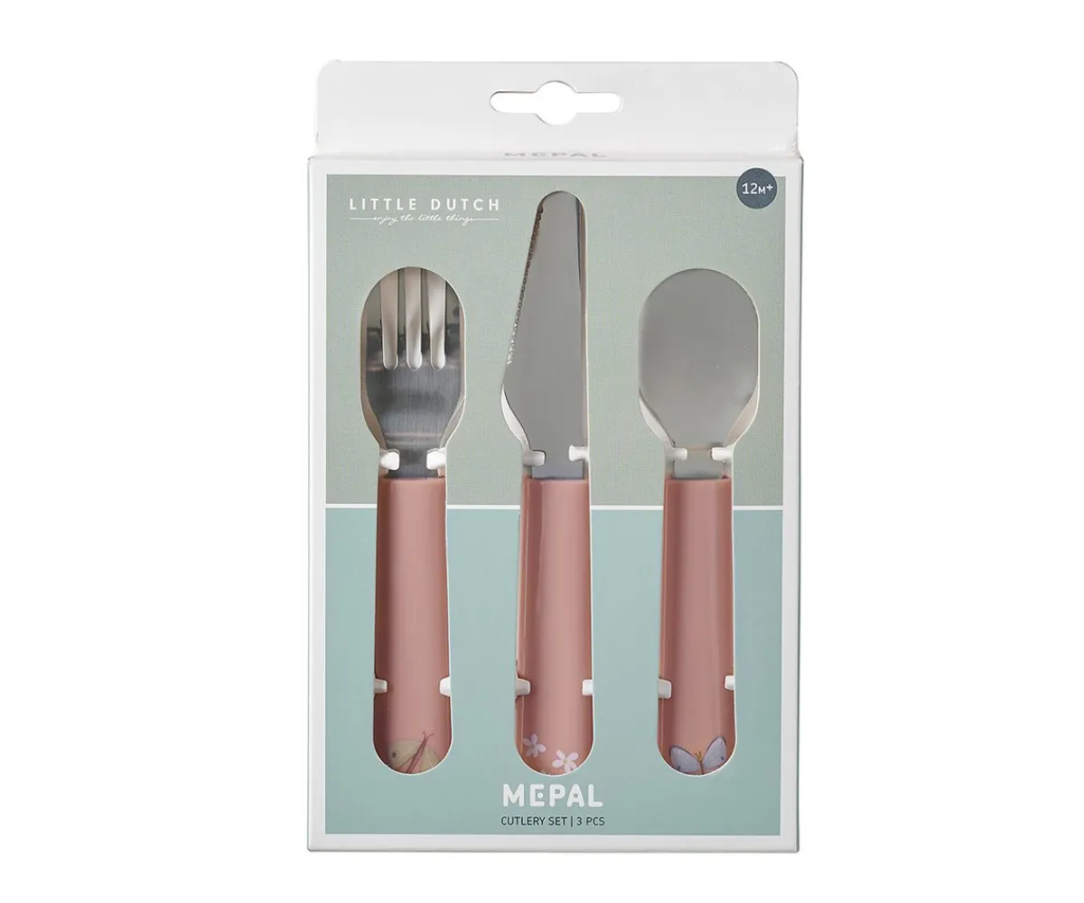 El juego consta de 3 cubiertos: un cuchillo, un tenedor y una cuchara adaptados a las manos más pequeñas de la casa. Así a los más peques les resultará más fácil agarrarlos a la hora de comer