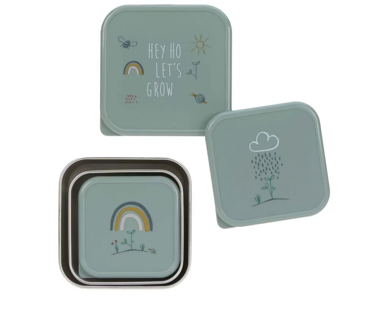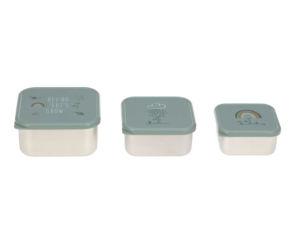 Set de 3 cajas almuerzo para llevar pequeños snack al cole. Además se pueden apilar una dentro de otra, cuando no estén en uso, y ahorrar espacio.