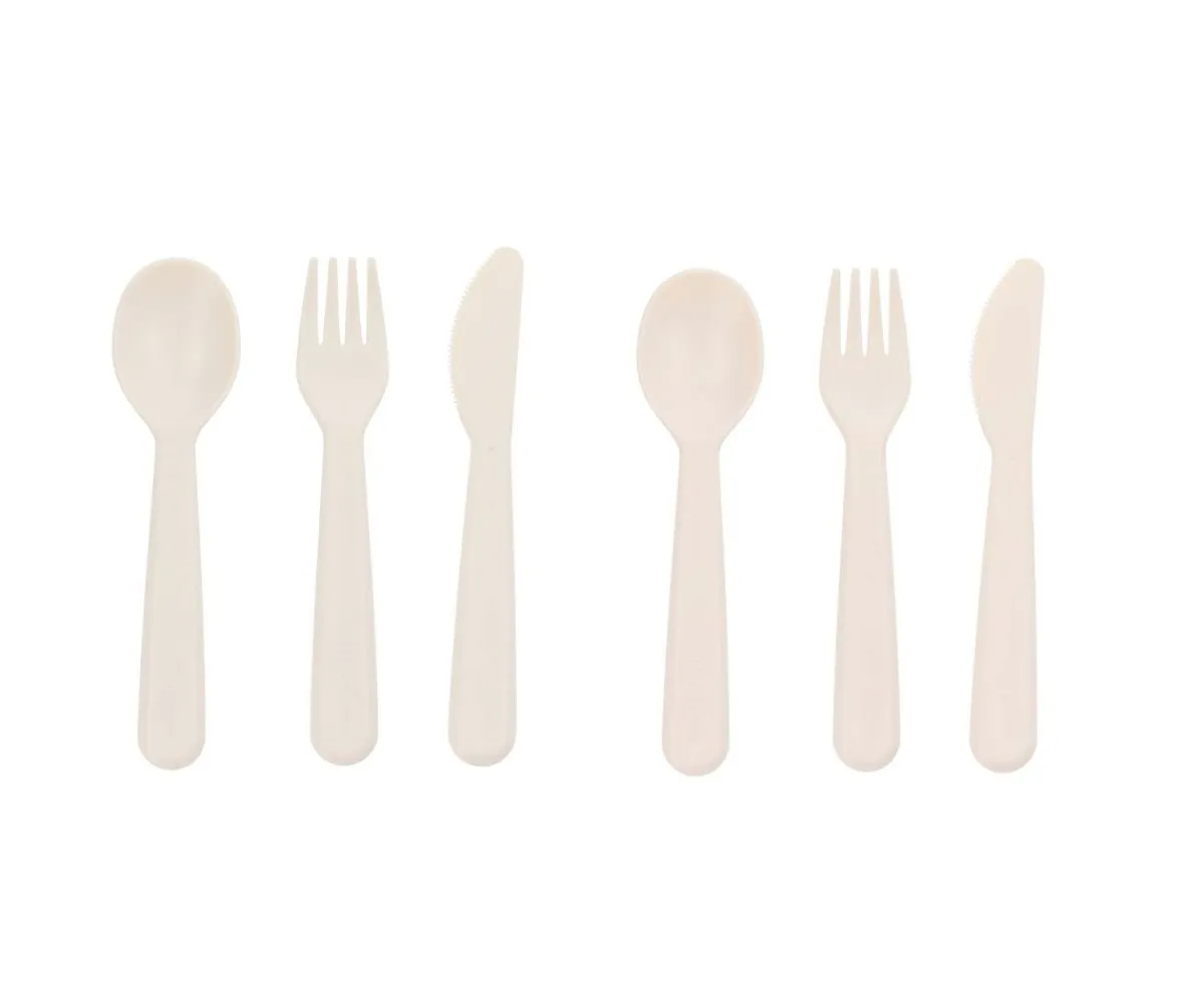 Set de cubiertos formado por 2 tenedores, 2 cucharas y 2 cuchillos. Tiene el tamaño y la forma perfecta para que los peques los puedan agarrar fácilmente, además son duraderos y con extremidades redondeadas.