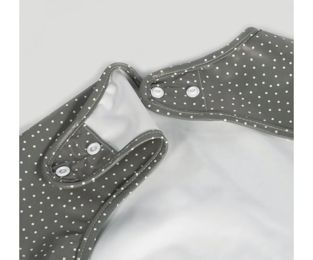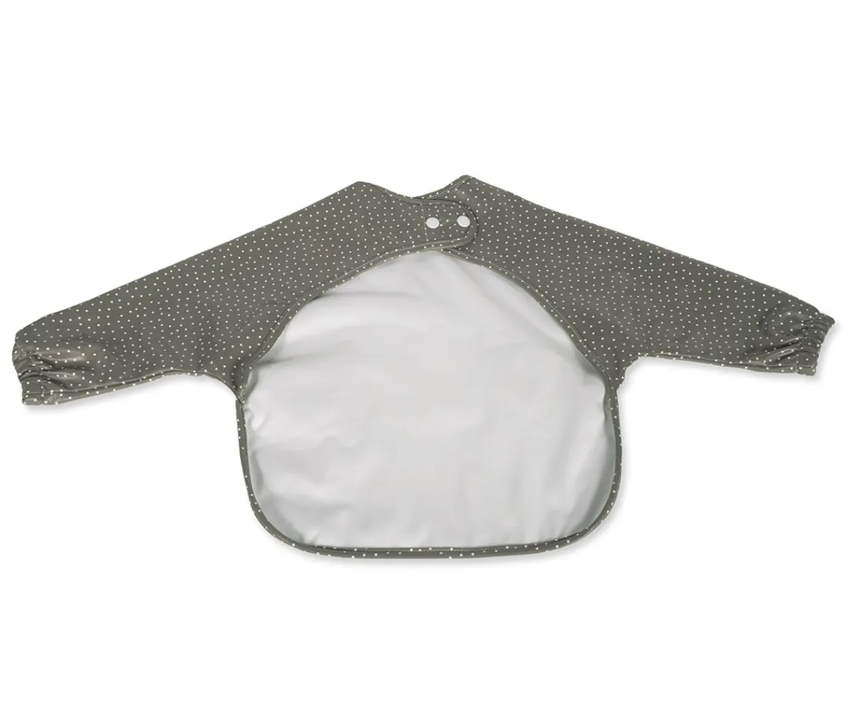 Divertido babero con mangas impermeable de Walking Mum, ideal para bebés de 6 meses a 3 años. Con diseño unisex y estampado de lunares, ofrece máxima protección gracias a sus mangas largas con puños elásticos y bolsillo recogemigas en forma de un divertido ratón. Hecho de material impermeable, fácil de limpiar y perfecto para comidas, BLW y manualidades.