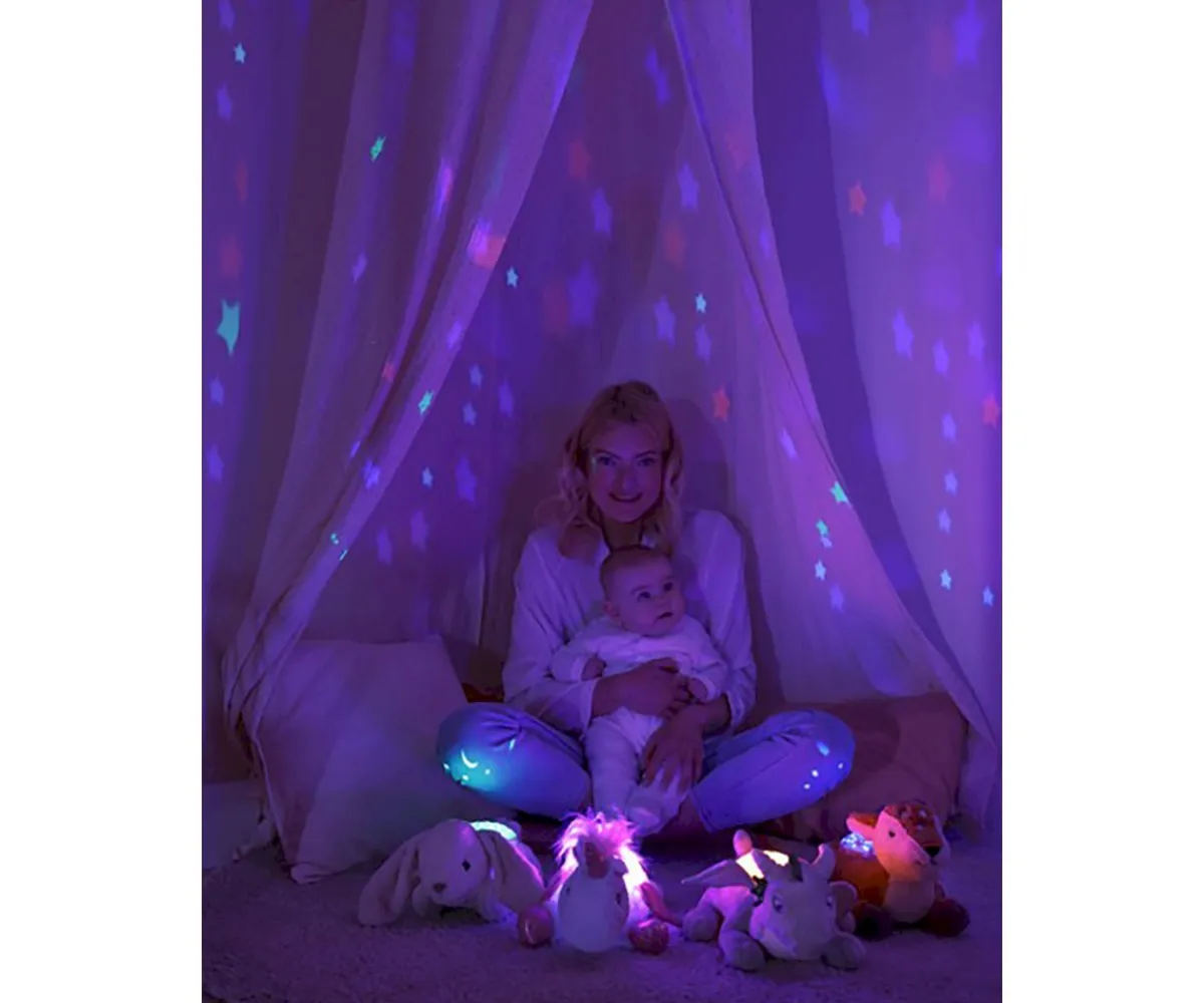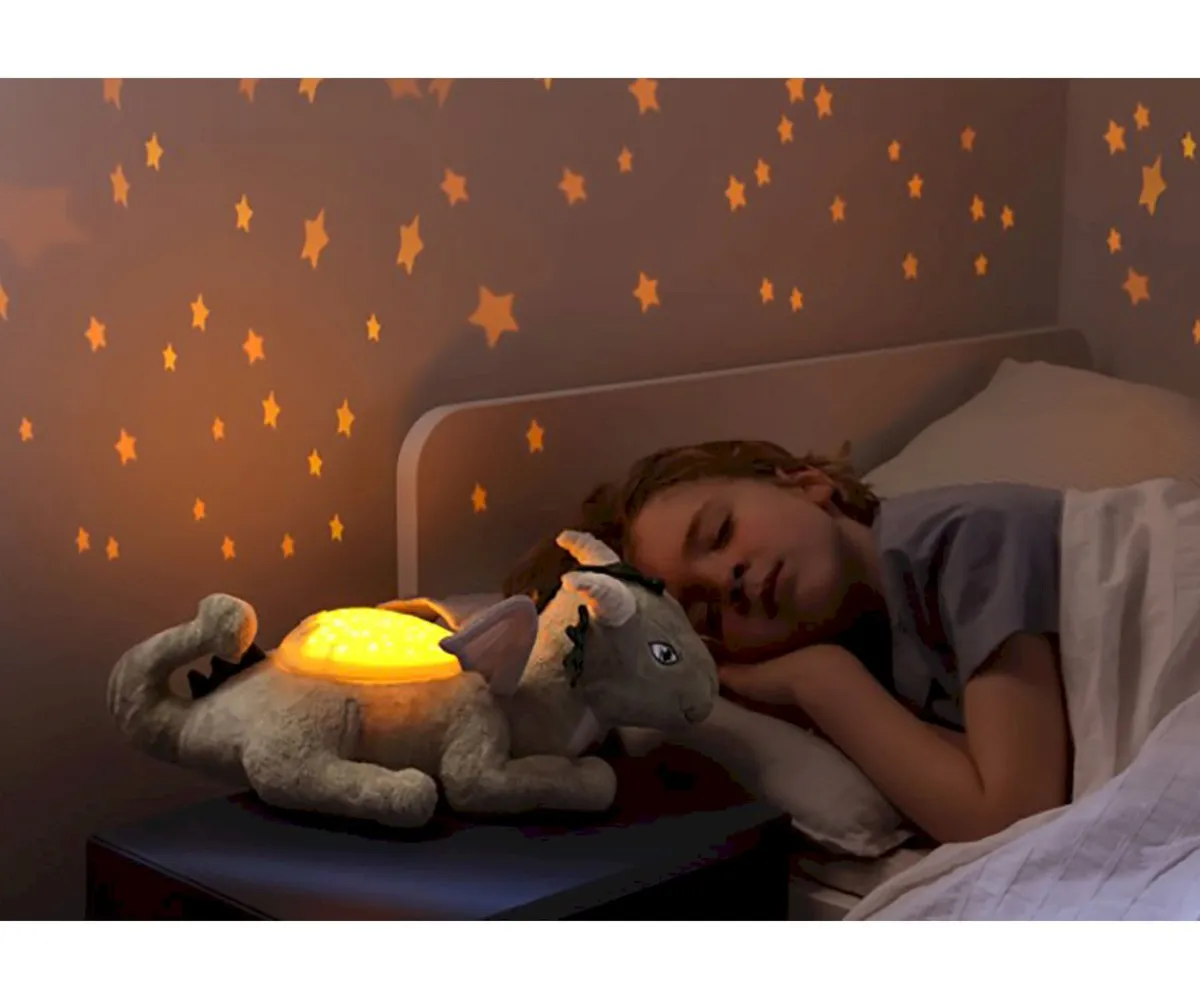 El dragón planetario viene con 2 relajantes melodías y 100 estrellas que «parpadean». El dragón proyecta varios patrones de estrellas de colores en el techo y crea un espectáculo de luces multicolor en el caparazón