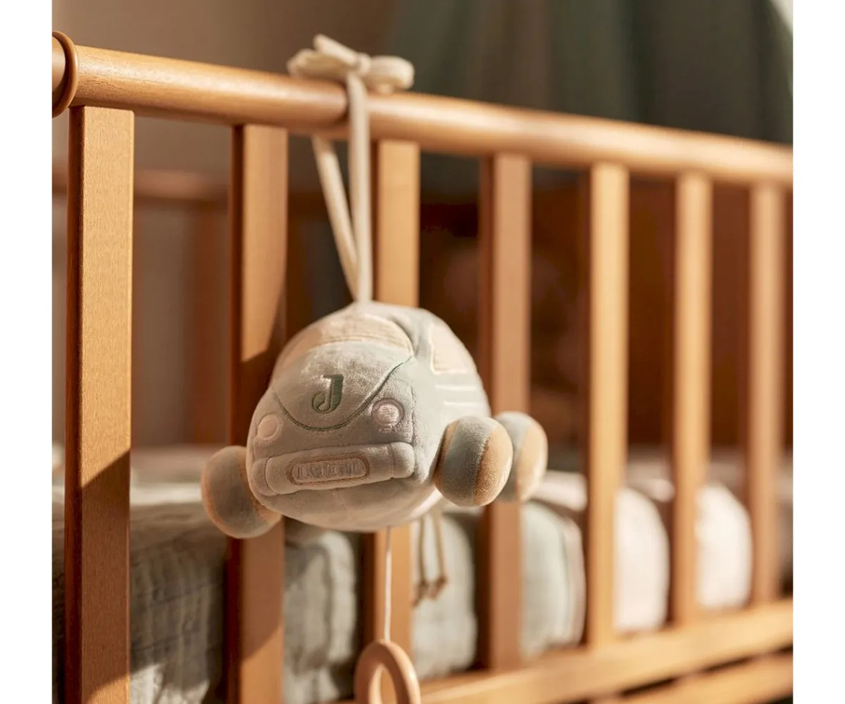 El juguete musical con forma de coche es estupendo para colocarlo en la cuna, en el carrito, en el asiento del coche o en el gimnasio del bebé.