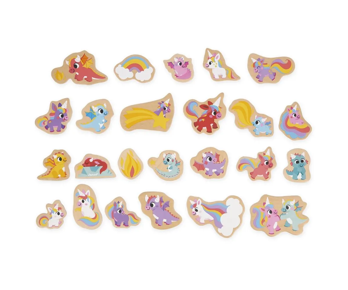 Los 24 imanes decorados con alegres unicornios y dragones son ideales para que los coloques en tu pizarra magnética, nevera o cualquier otra superficie magnética.