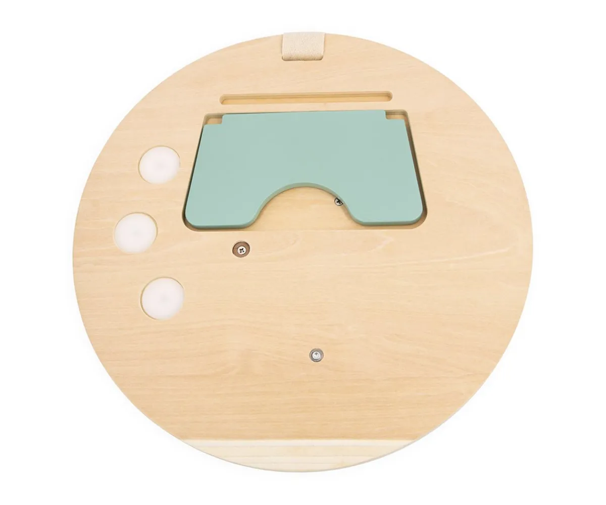 ¡Descubre la diversión con este panel de madera lleno de actividades!